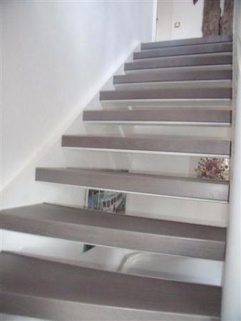 Bei offenen Treppen, die in die Jahre gekommen sind, ist es zur Abnutzung der vorderen Stufenkante gekommen. Kratzer und Druckstellen sind auf einigen Stufen